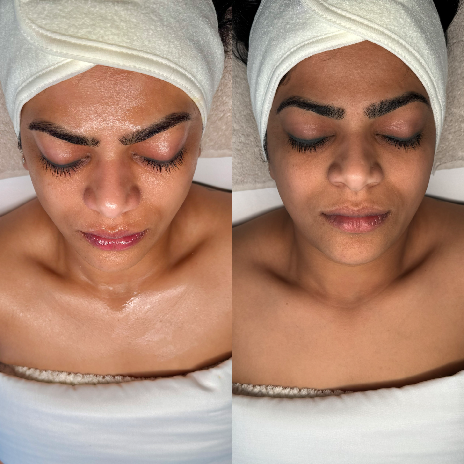 Your treatment begins with a gentle double cleanse and steam to soften the skin, open pores, and prepare for deep exfoliation.